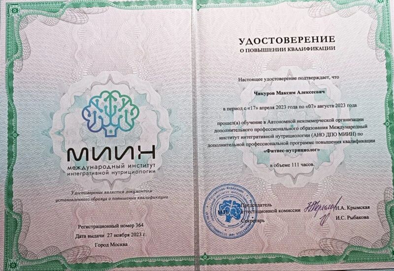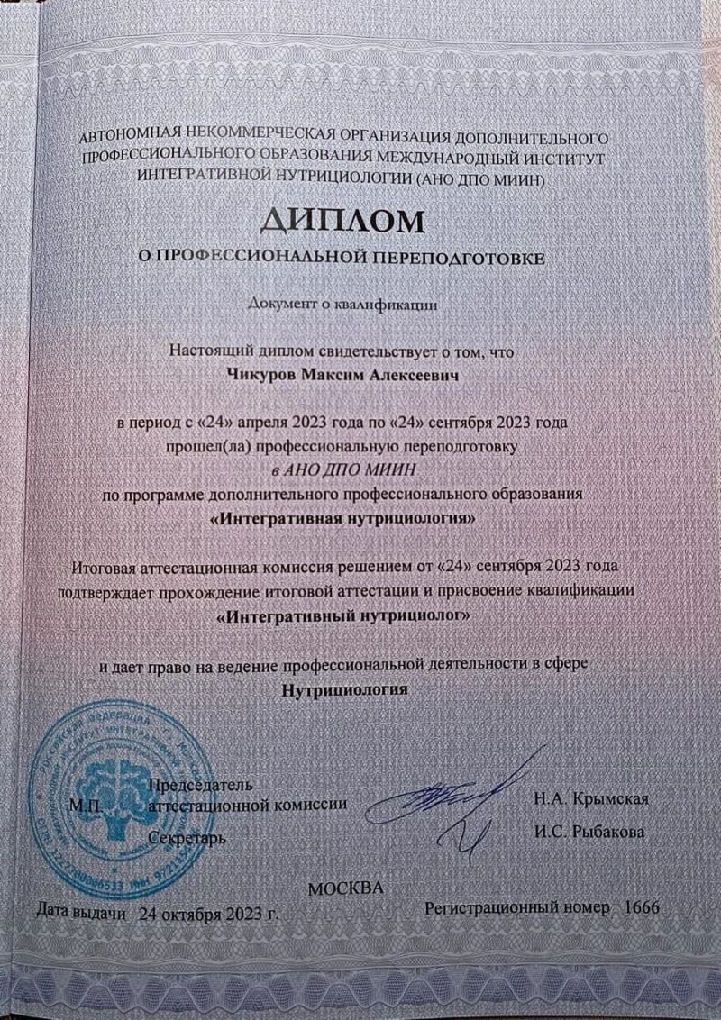 - Международный институт интегративной нутрициологии (МИИН) Интегративный нутрициолог, 2023 г.