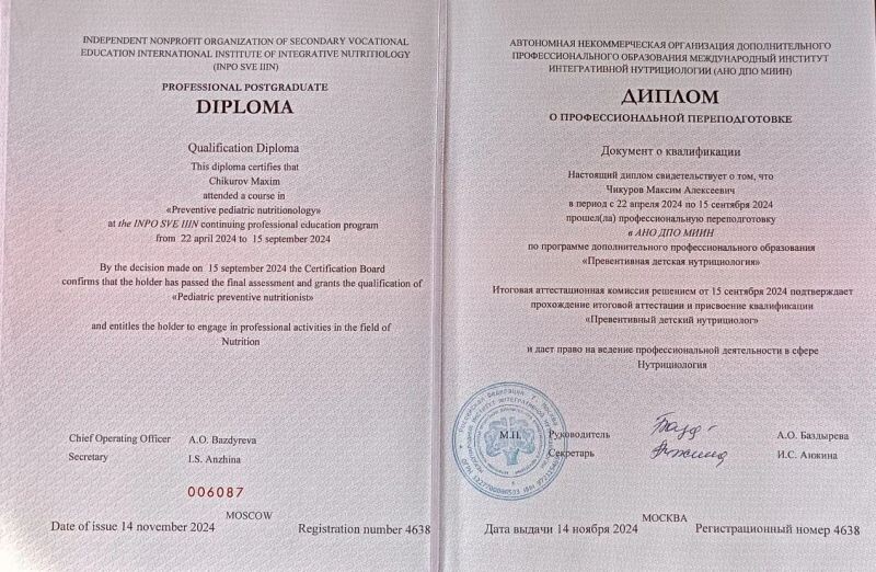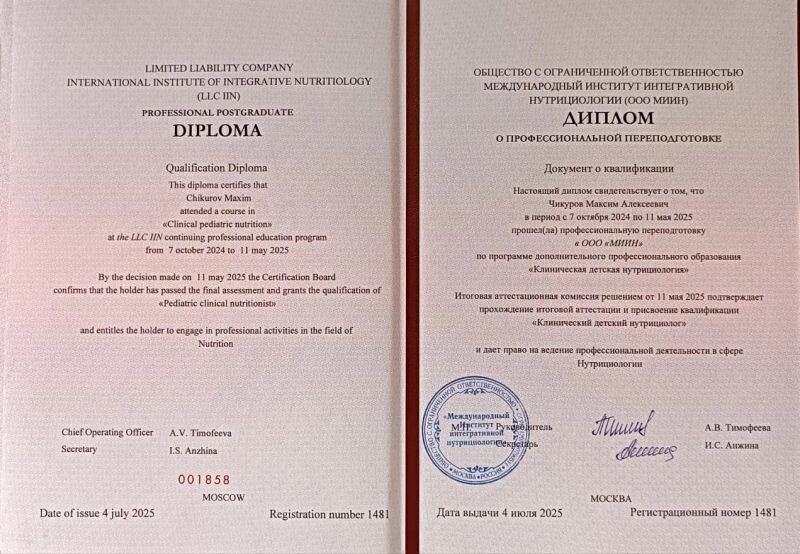 - МИИН Клинический детский нутрициолог, 2024–2025 гг.
