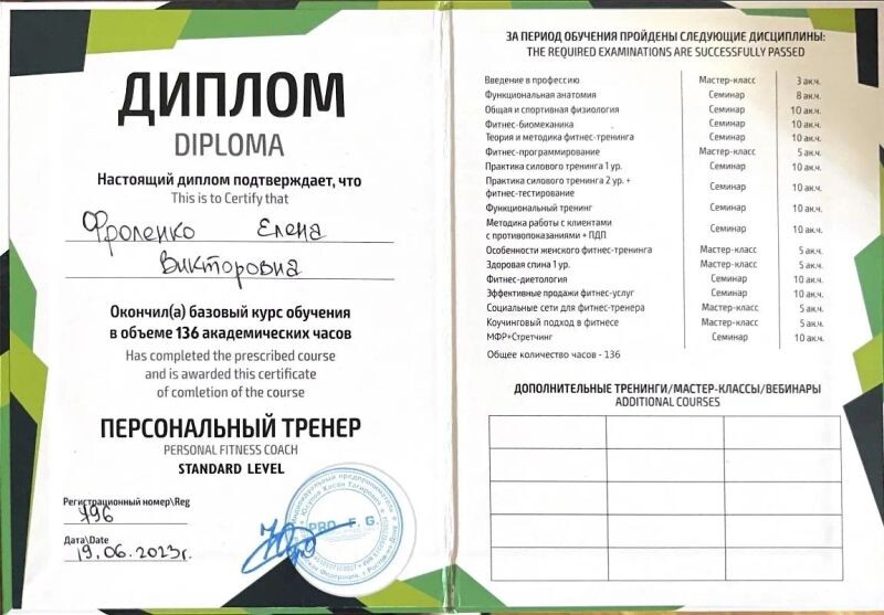 - Персональный тренер, 2023 г.