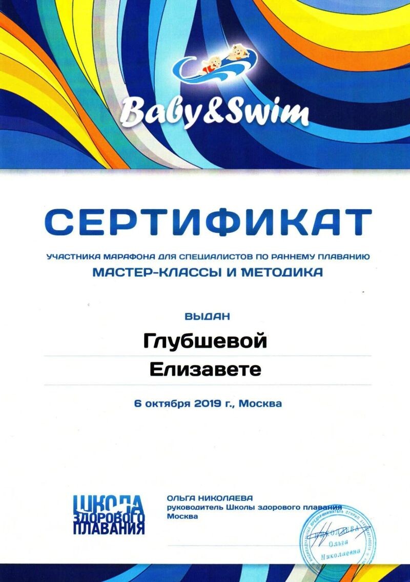 - Baby swimming Russia, курс «Грудничковое плавание 1-2 года», 2019 г.