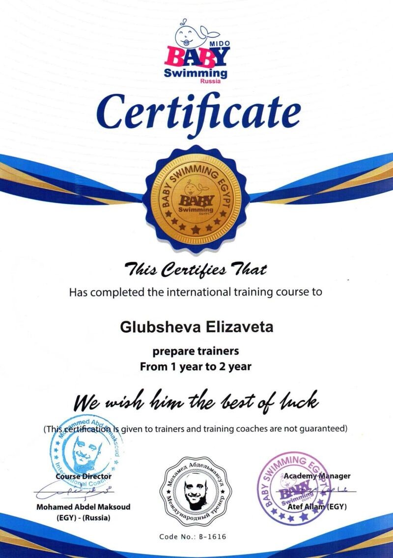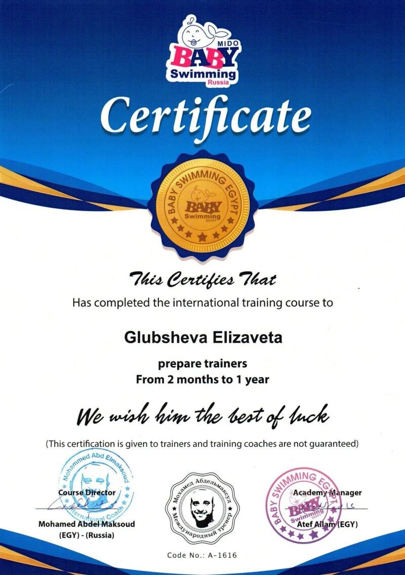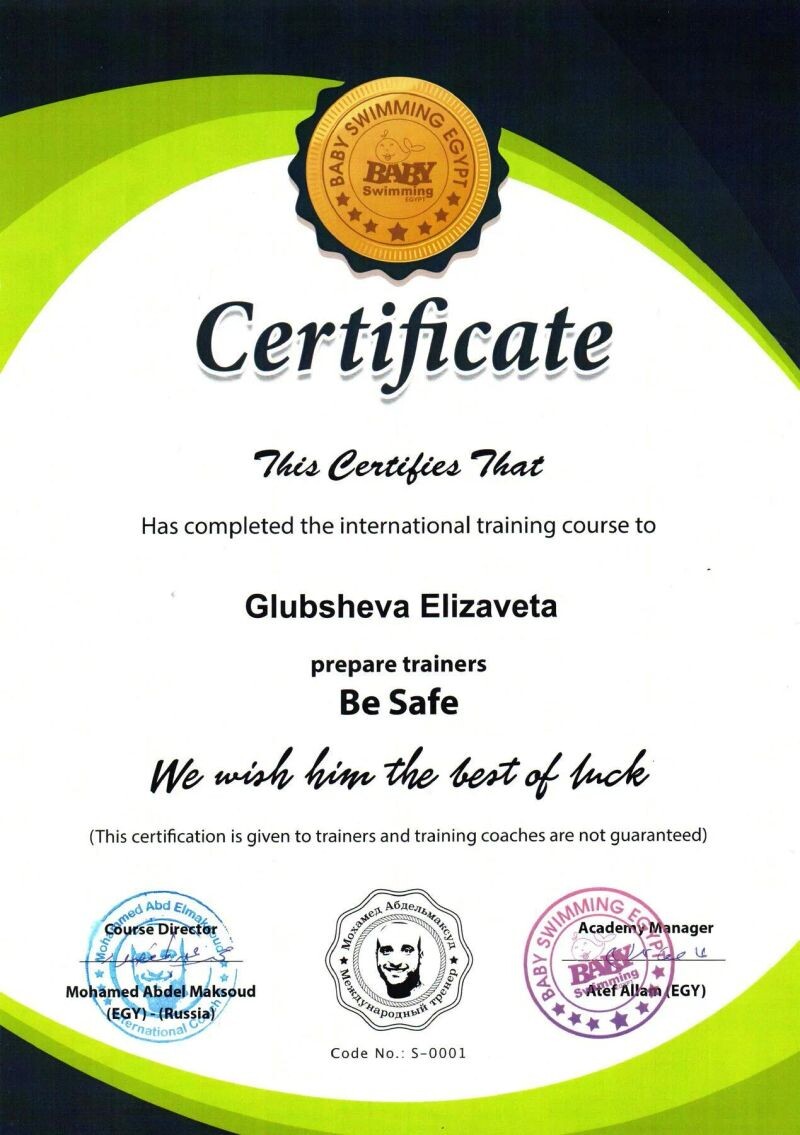 - Baby swimming Egypt, курс «Детское плавание. Самоспасение», 2019 г.
