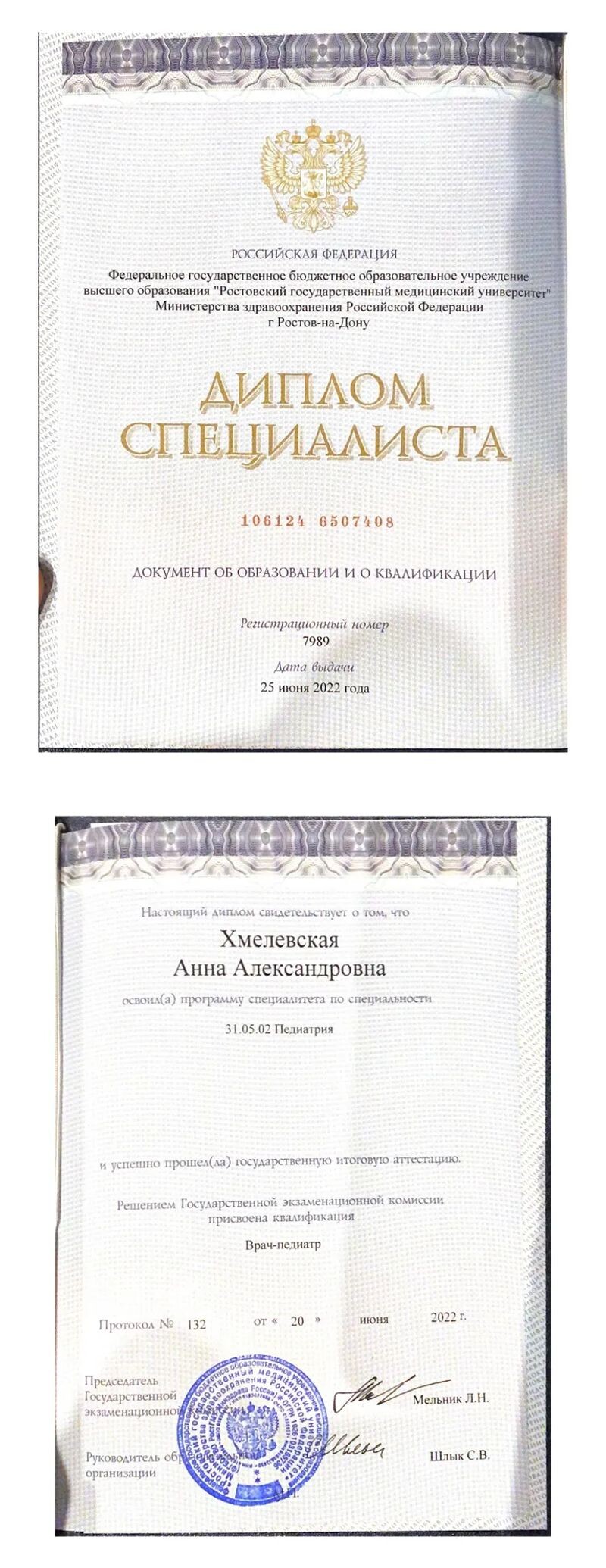 - Ростовский государственный медицинский университет, педиатрия, врач-педиатр, 2016 г.