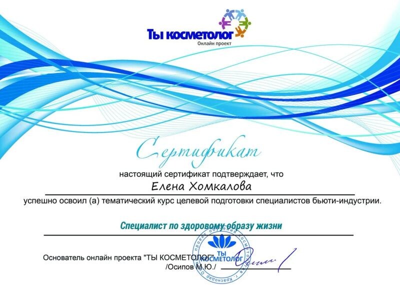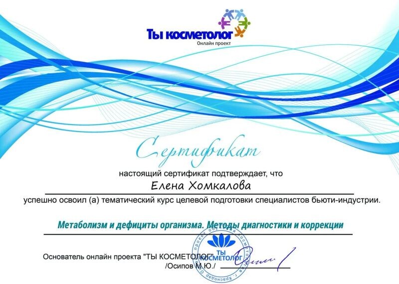 - «Ты-косметолог», Метаболизм и дефицита организма. Методы диагностики и коррекции (с 2020 г.).
