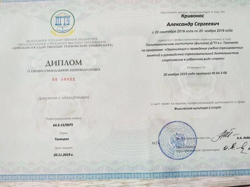 - ДГТУ, профессиональная переподготовка, физическая культура и спорт, 2019 г.