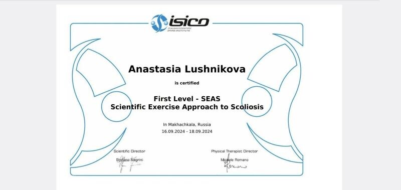 - ISICO, базовый курс SEAS по работе со сколиозом с помощью упражнений, 2024 г.