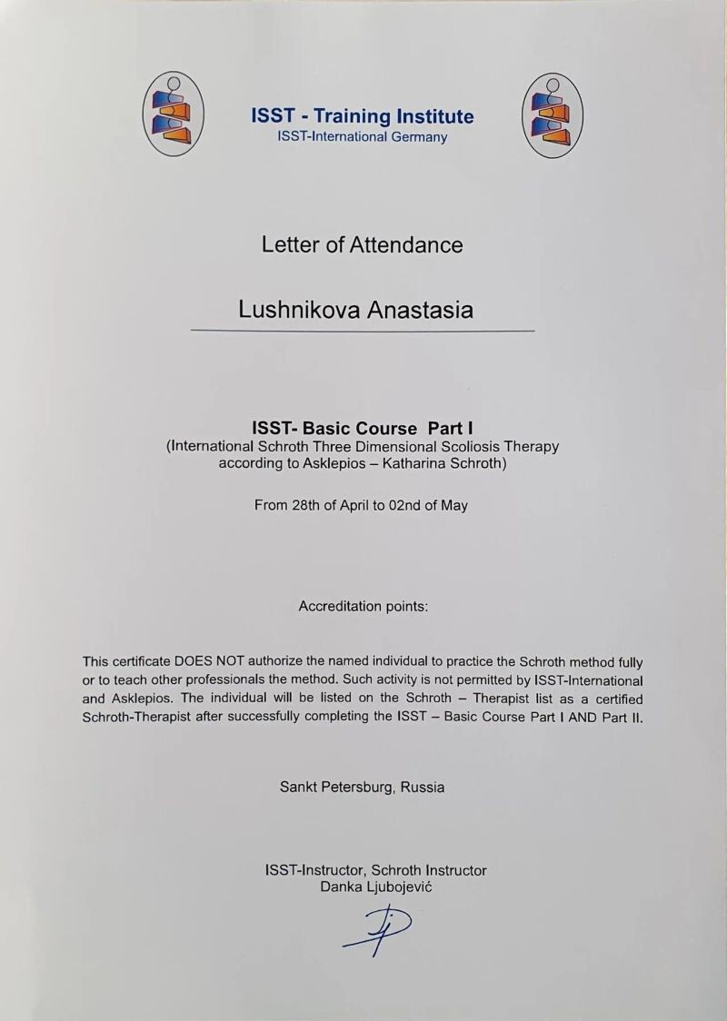 - ISST-Training Institute, International Schroth Three Dimensional Scoliosis Therapy according to Asklepios-Katharina Schroth, 2025 г.
