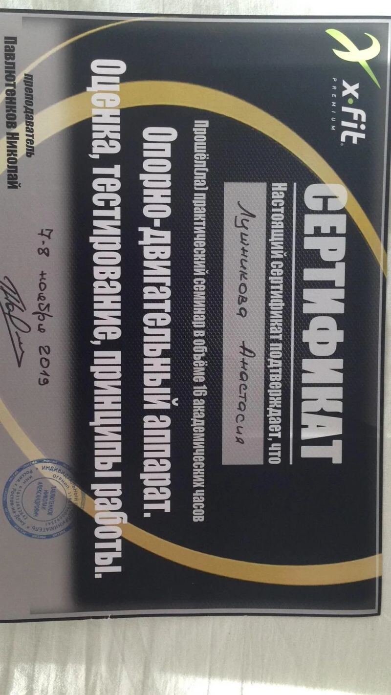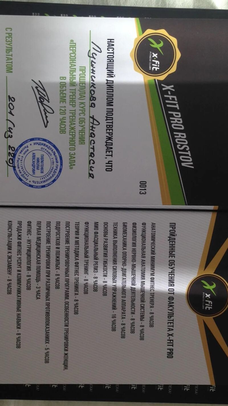 - X-FIT PRO ROSTOV, курс «Персональный тренер тренажёрного зала», 2019 г.