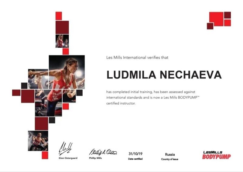 - Body Pump, сертифицированный инструктор, 2019 г.