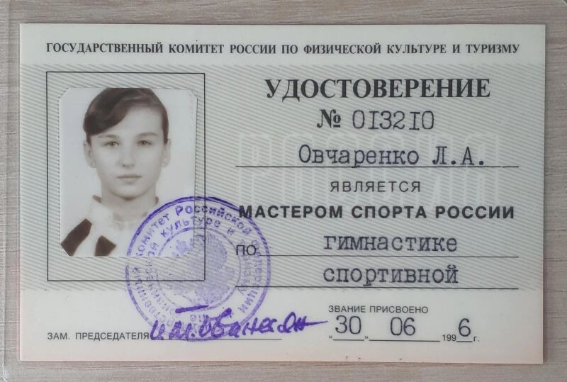- Мастер спорта по спортивной гимнастике, 1996 г.