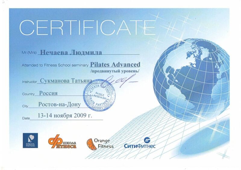 - ООО «Страта партнёрс», пилатес, продвинутый уровень, 2009 г.