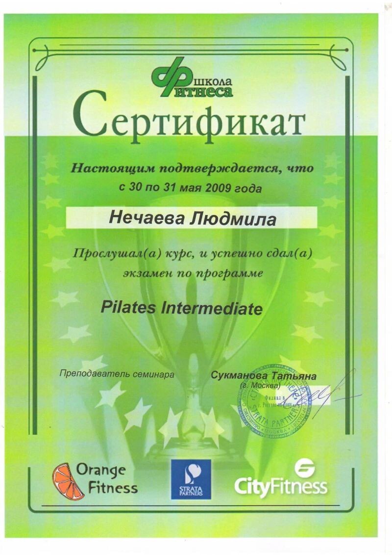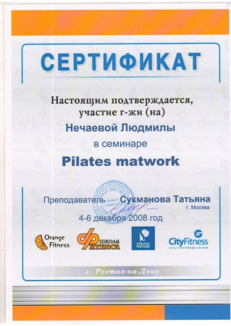 - ООО «Страта партнёрс», пилатес, 1 уровень, 2008 г.