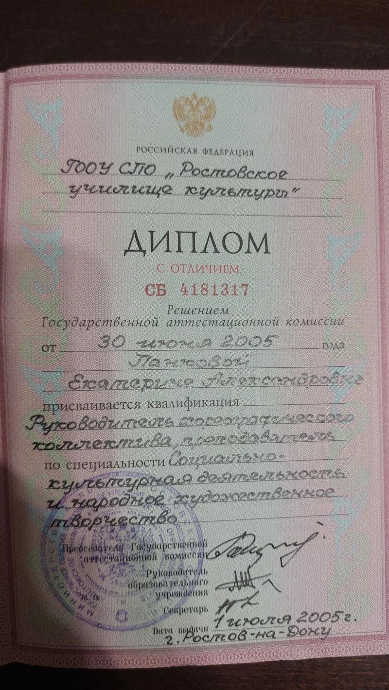 - ГООУ СПО "Ростовское училище культуры ", 2002–2005 гг.