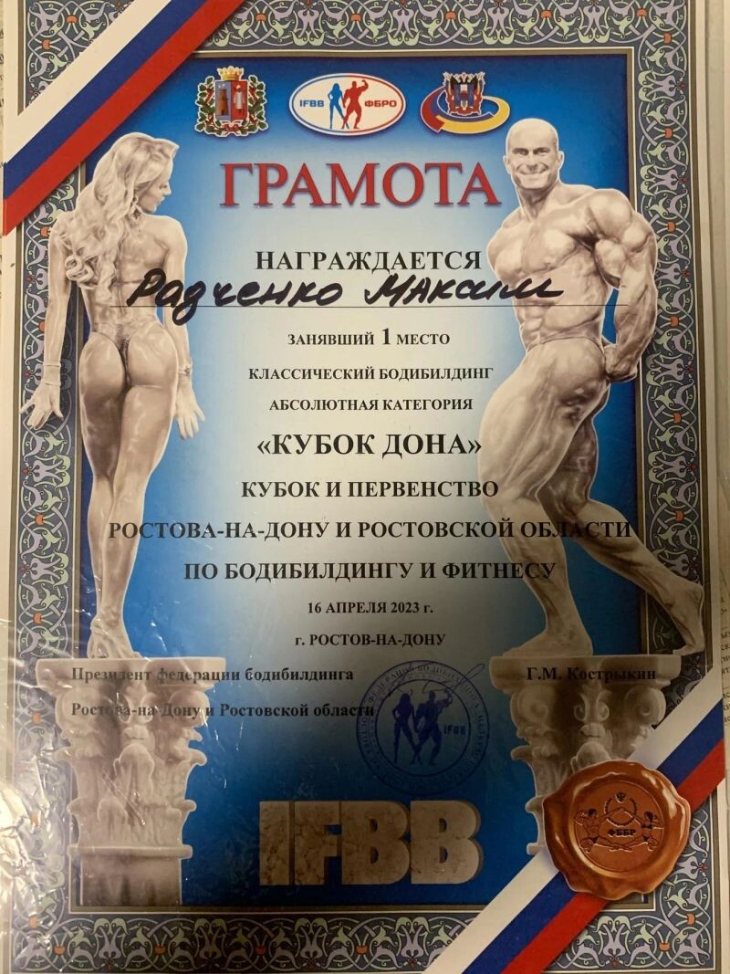 - Кубок и первенство Ростова-на-Дону и Ростовской области по бодибилдингу и фитнесу «Кубок Дона», 1 место, 2023 г.