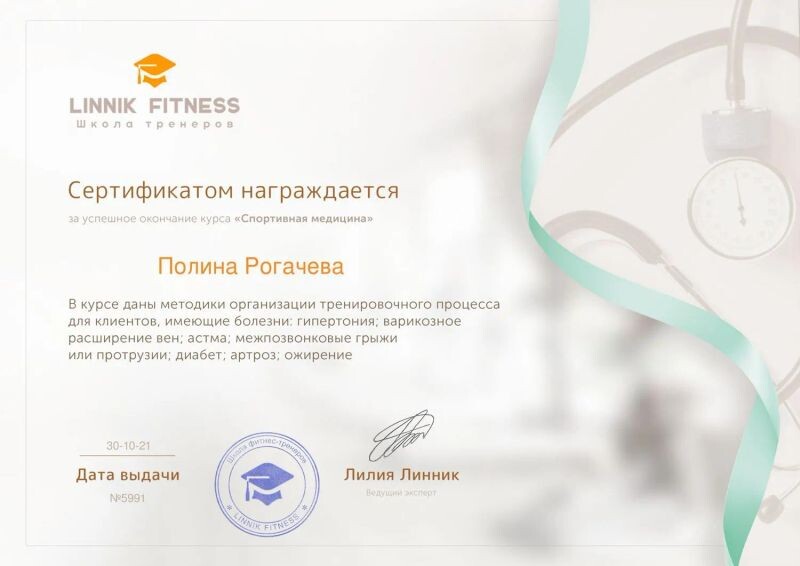 - Linnik Fitness, спортивная медицина, 2021 г.