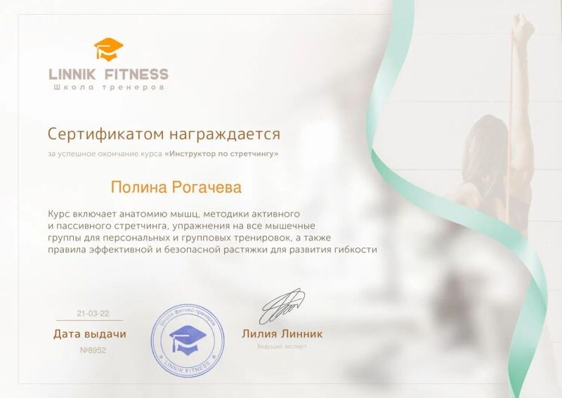 - Linkin Fitness, инструктор по стретчингу, 2022 г.