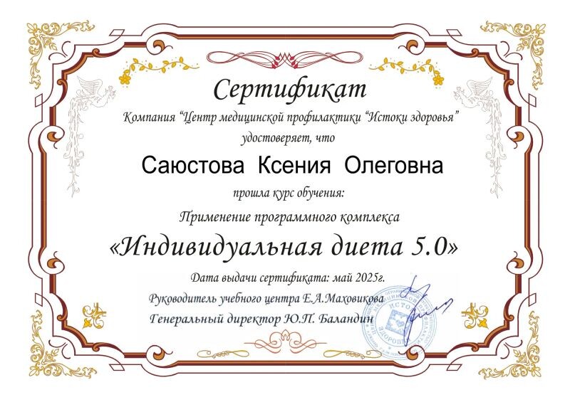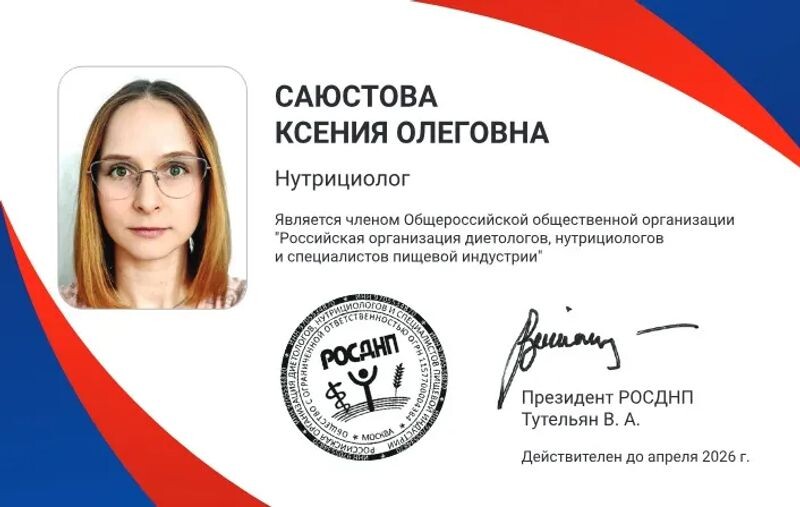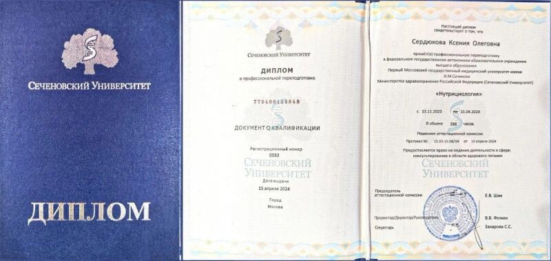 - Первый Московский Государственный Медицинский Университет им. Сеченова Нутрициология, 2023–2024 гг.