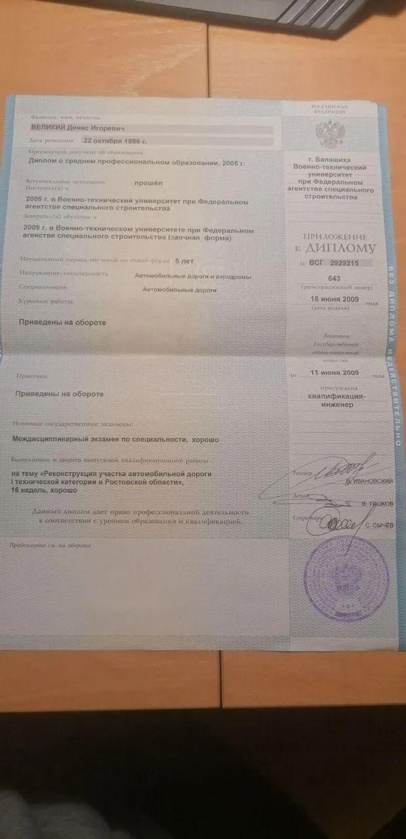 - Военно-технический университет при Федеральном агентстве специального строительства, инженер, 2005–2009 гг.