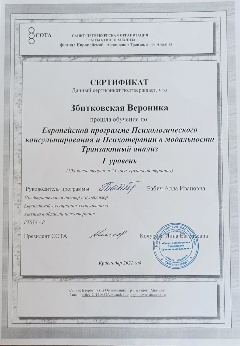 - Санкт-Петербургская организация транзактного анализа, обучение по европейской программе психологического консультирования и психотерапии в модальности Транзактный анализ, 1 уровень, 2020–2021 гг.
