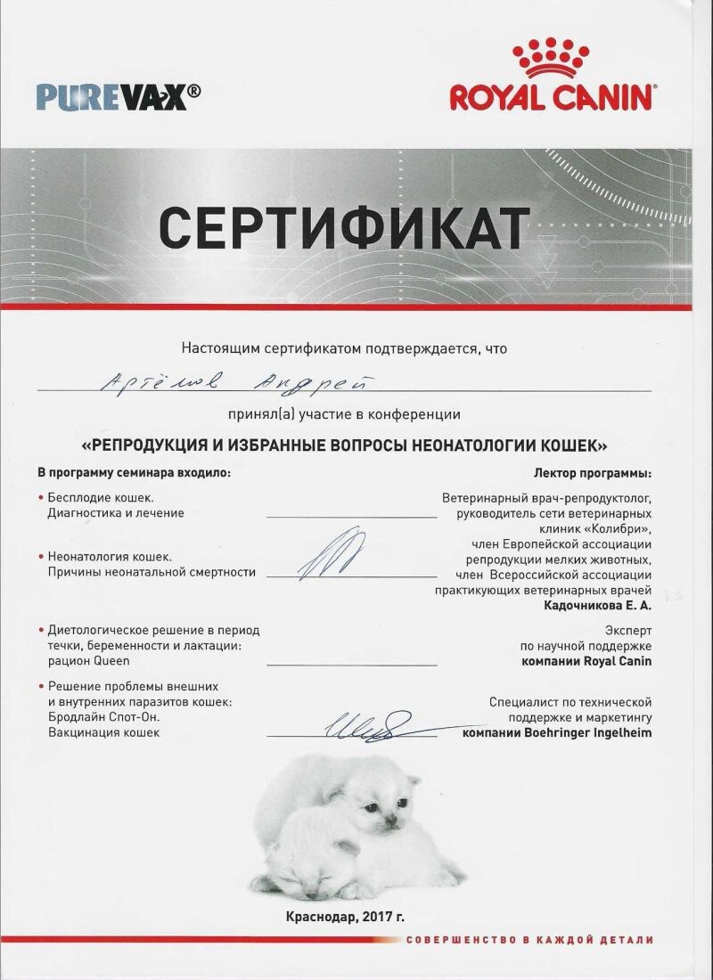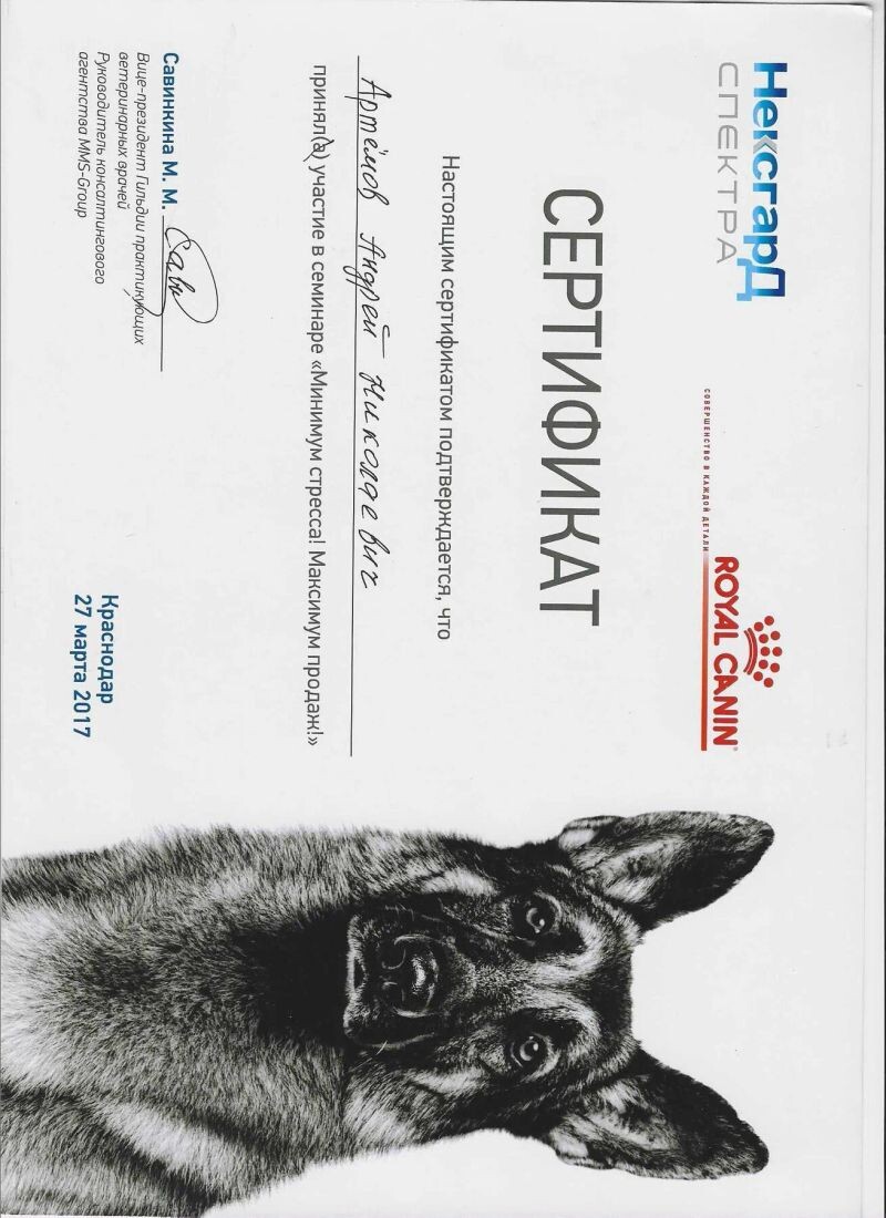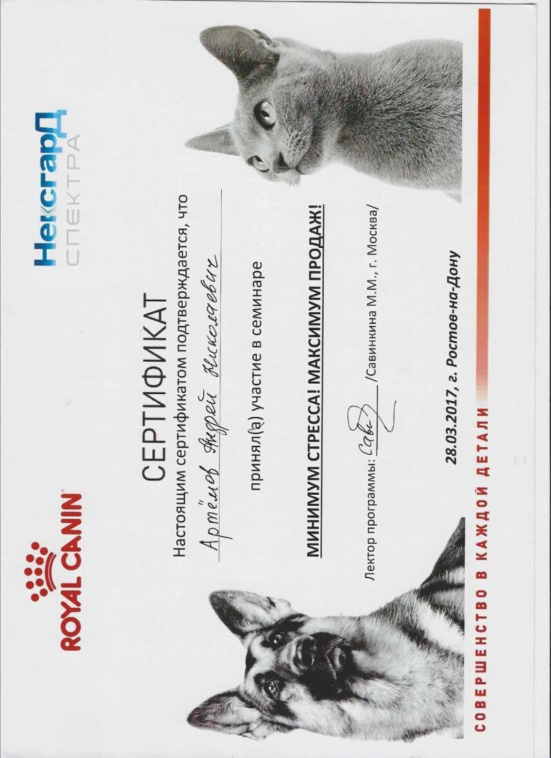 - Royal Canin, семинар «Минимум стресса! Максимум продаж!», 2017 г.