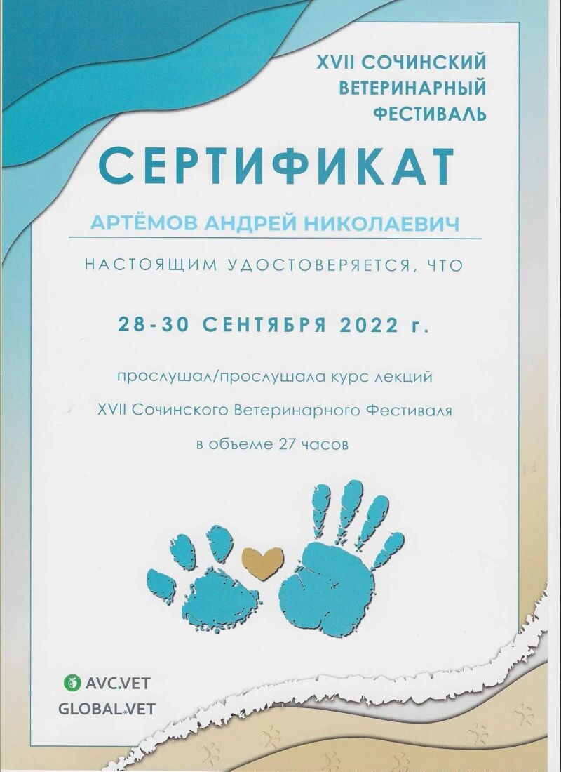 - XVII Сочинский ветеринарный фестиваль, курс лекций, 2022 г.