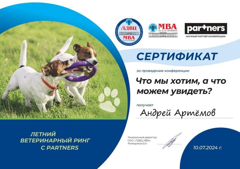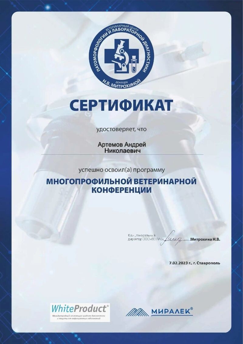 - Ветеринарный центр патоморфологии и лабораторной диагностики, многопрофильная ветеринарная конференция, 2023 г.