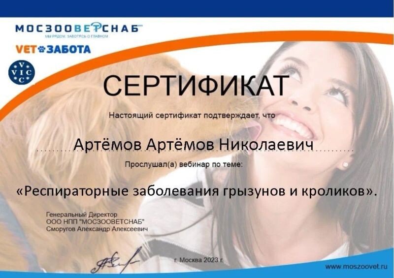 - ООО НПП «МОСЗООВЕТСНАБ», вебинар «Респираторные заболевания грызунов и кроликов», 2023 г.