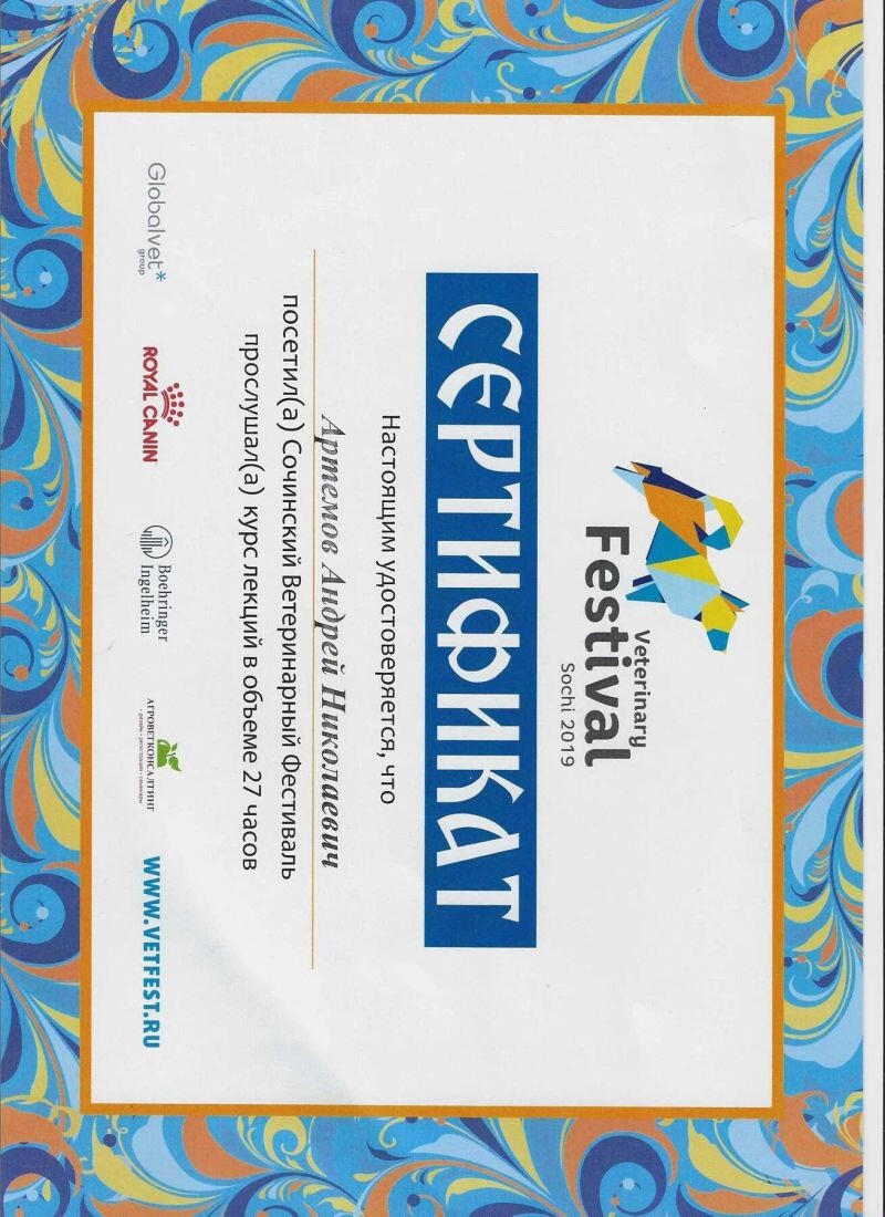 - Veterinary Festival, курс лекций, 2019 г.