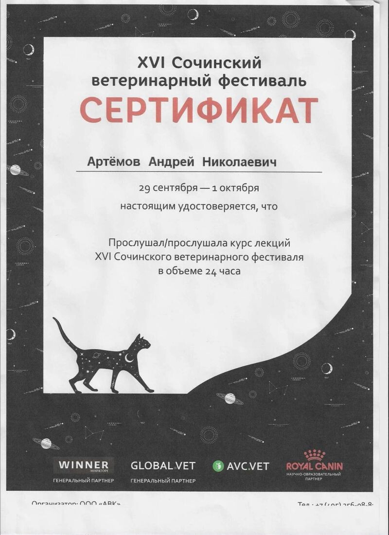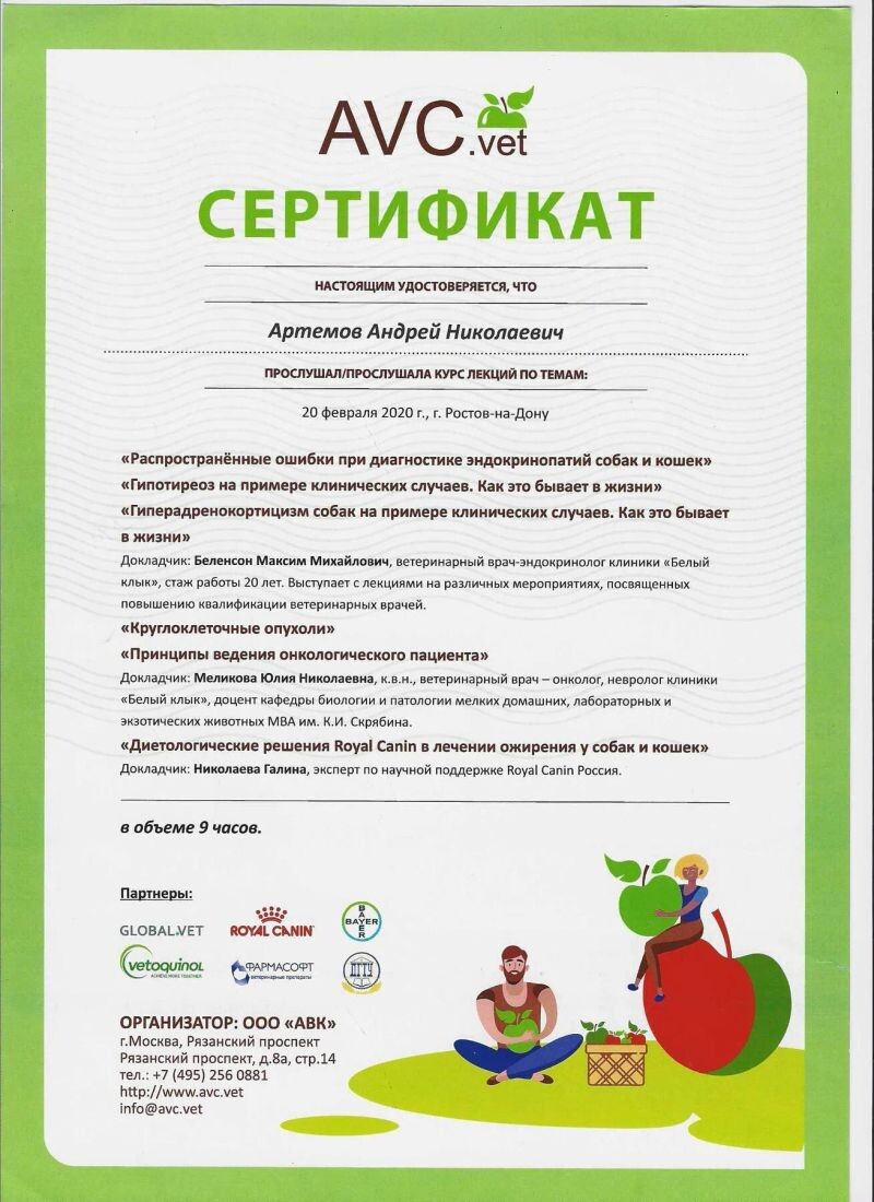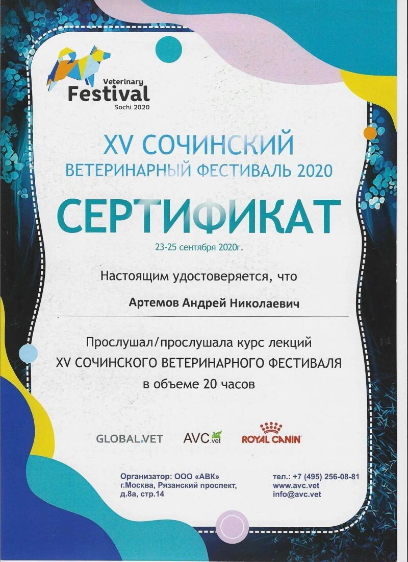 - Сочинский ветеринарный фестиваль, курс лекций, 2020 г.