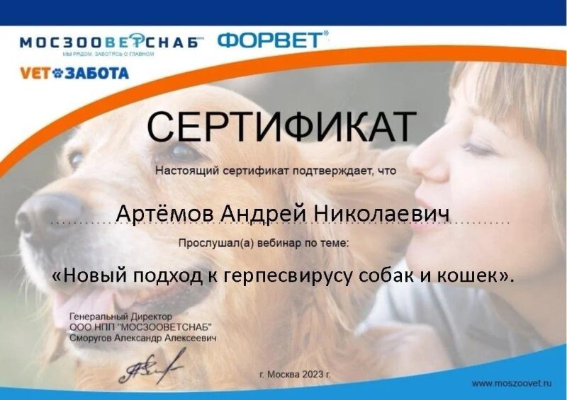 - ООО НПП «МОСЗООВЕТСНАБ», вебинар «Новый подход к герпесвирусу собак и кошек», 2023 г.