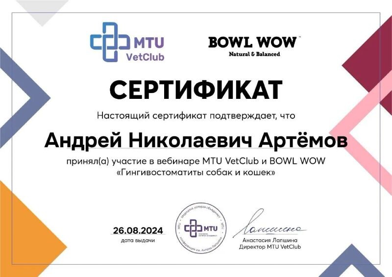 - MTU VetCLub, вебинар «Гингивостоматиты собак и кошек», 2024 г.