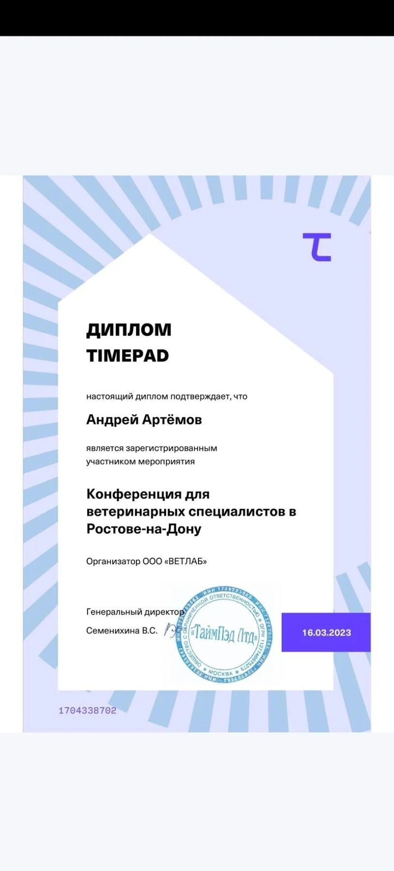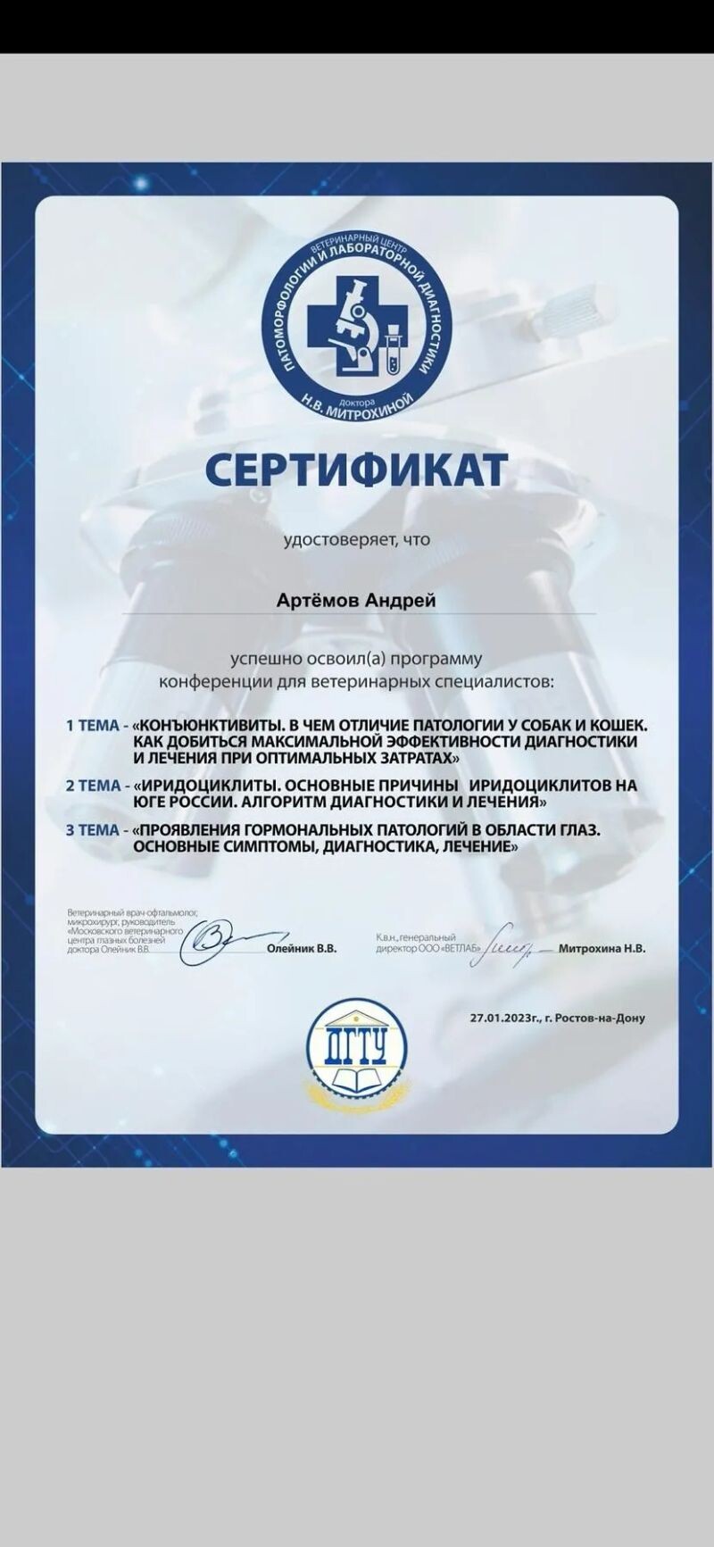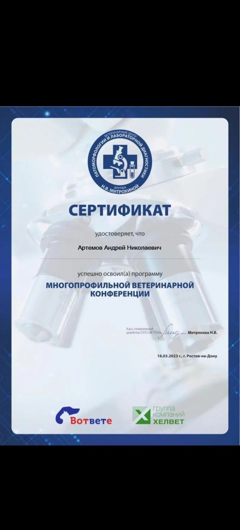 - Ветеринарный центр патоморфологии и лабораторной диагностики, конференция для ветеринарных специалистов, 2023 г.