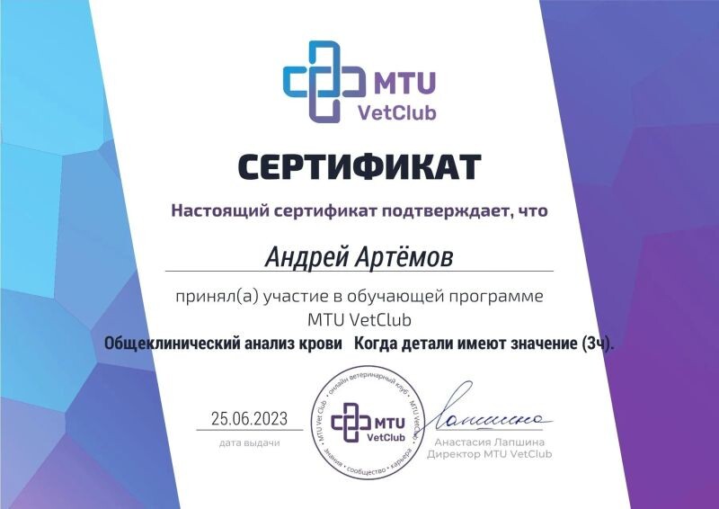 - MTU VetClub, общеклинический анализ крови, когда детали имеют значение (3ч), 2023 г.