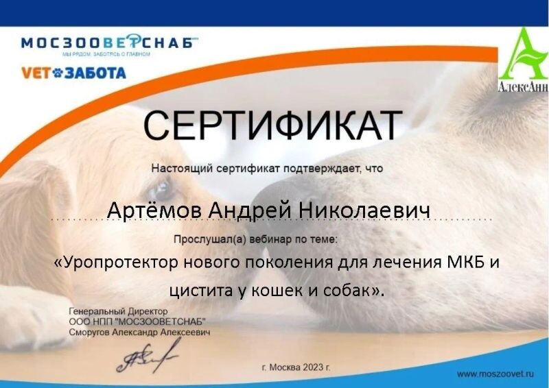 - ООО НПП «МОСЗООВЕТСНАБ», вебинар «Уропротектор нового поколения для лечения МКБ и цистита у кошек и собак», 2023 г.