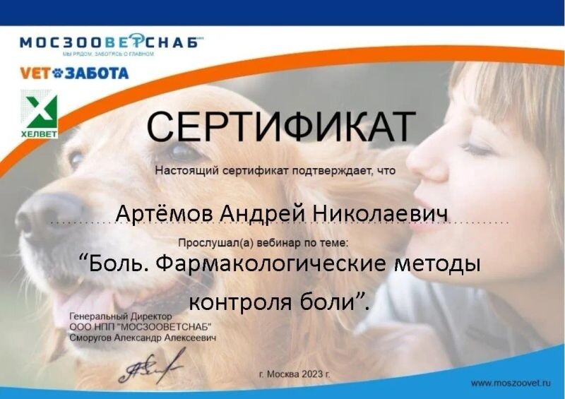 - ООО НПП «МОСЗООВЕТСНАБ», вебинар «Боль. Фармакологические методы контроля боли», 2023 г.