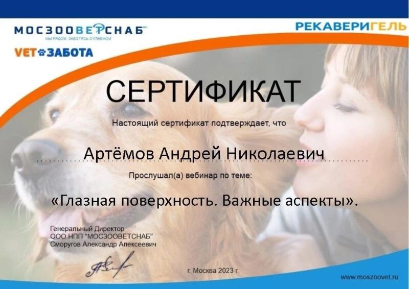 - ООО НПП «МОСЗООВЕТСНАБ», вебинар «Глазная поверхность. Важные аспекты», 2023 г.