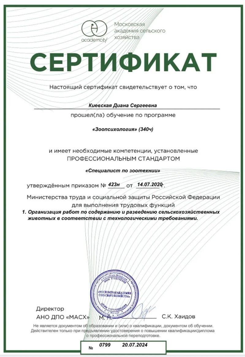 - МАСХ, программа «Зоопсихология», 2024 г.