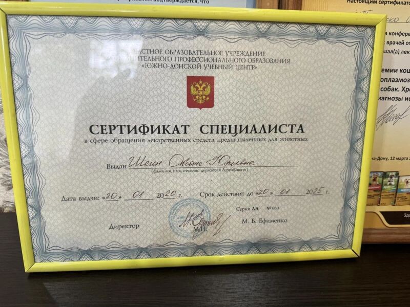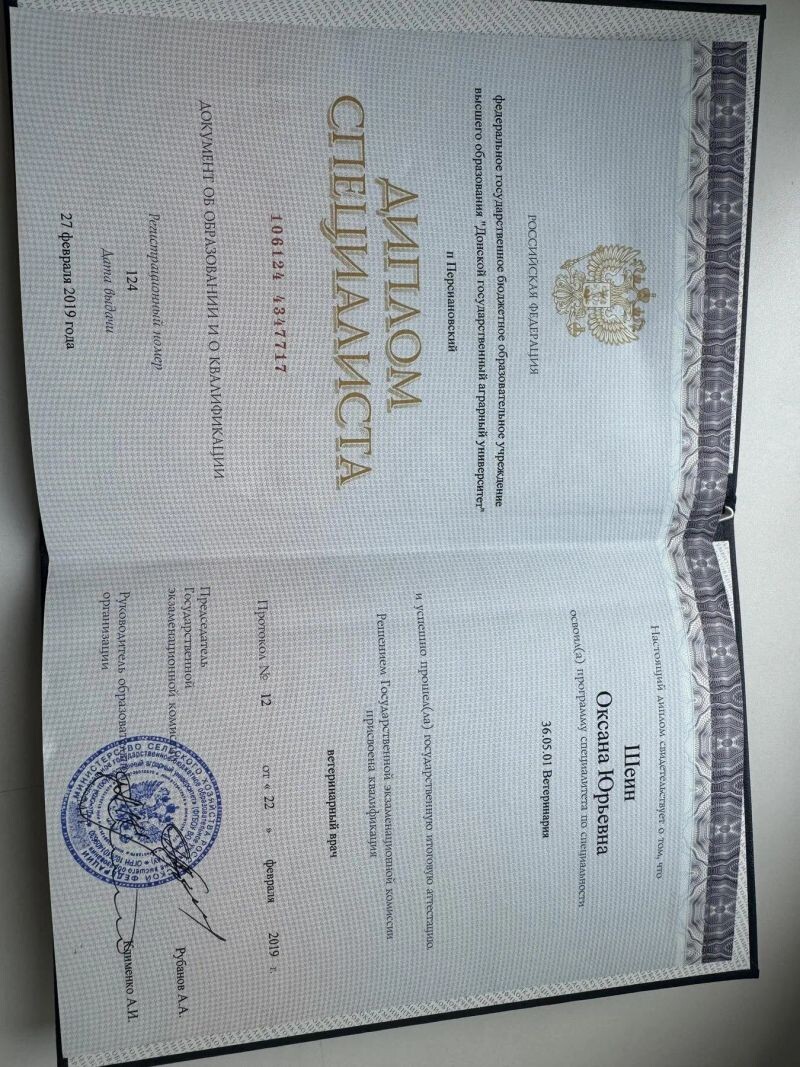 - Донской государственный аграрный университет, ветеринарный врач, 2013–2019 гг.