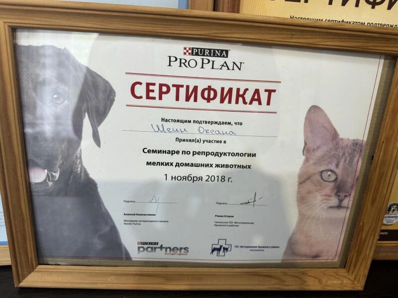 - Purina Pro Plan, семинар по репродуктологии мелких домашних животных, 2018 г.