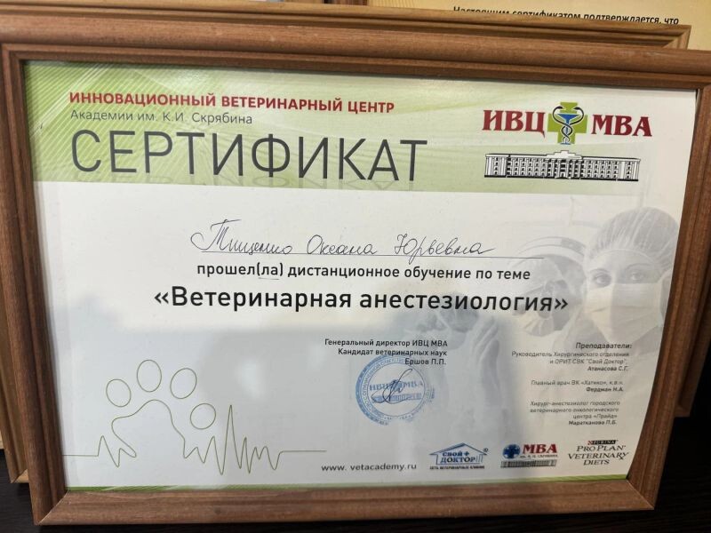 - ИВЦ МВА, обучение по теме «Ветеринарная анестезиология», 2018 г.